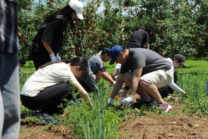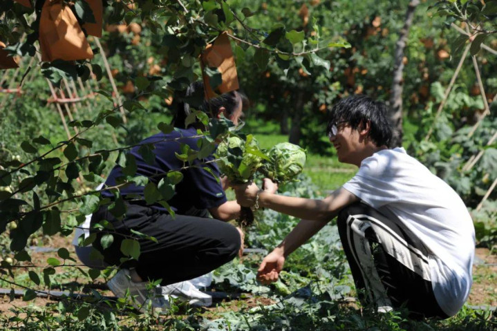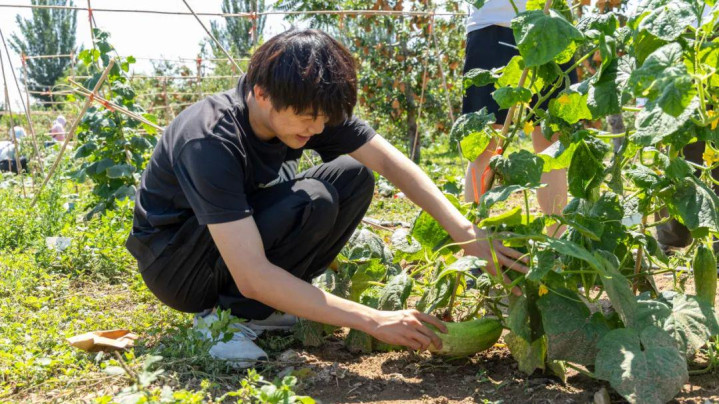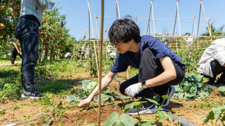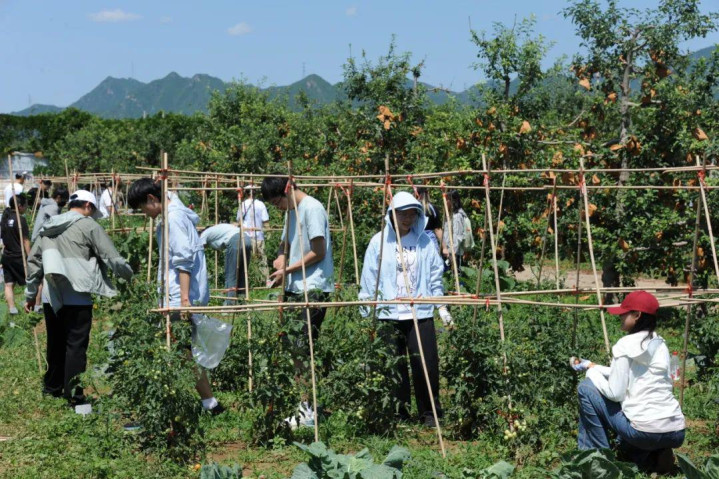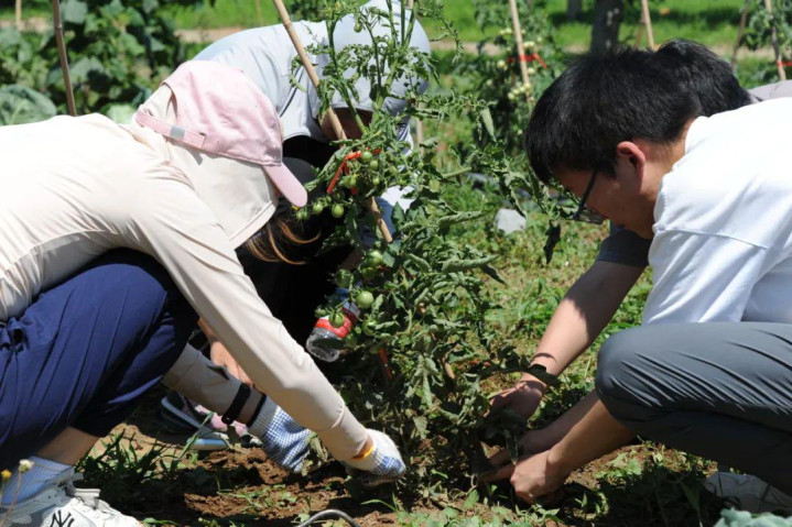 2025年4月19日,北京大学经济学院100余名本科生在昌平区十三陵镇有机生态农庄翻地平地、开沟播种,进行“经济学综合实践”课程教育实践,种下了春季作物的种子。2025年6月20日,100余名同学重返生态农庄,开展“经济学综合实践”课程劳动实践模块,收获成熟的西红柿、圆白菜和黄瓜。北京大学教务长办公室副主任宋鑫,经济学院副院长、风险管理与保险学系教授锁凌燕,院长助理、团委书记李晓丹,辅导员刘变变、上官立波带队开展实践。